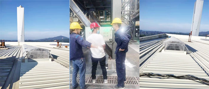 8月19日把產品發貨贛州,安裝人員 隨后趕至現場開安全教育會議,查看現場時發現廠房內設備進不去,鑫友們商議好布線方案經電廠副總同意后開始施工布線。高度太高,從九層穿線至三層,安裝人員克服困難,倍道而進,爭取早日交付。